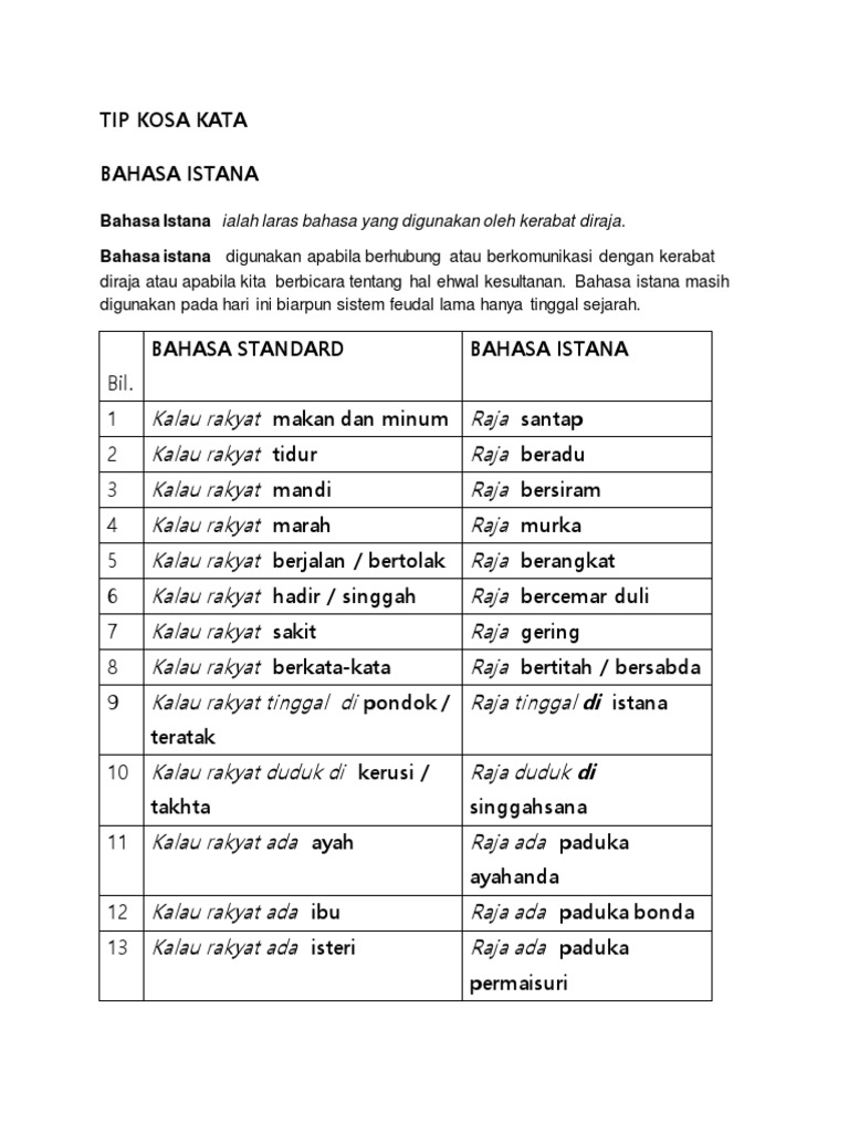 Kosa Kata Bahasa Melayu Istana By Ra_Eva153 06 Apr, 2022 Post a Comment Tips Kosa Kata Diraja Pdf Contoh Soalan Penulisan Darjah 4 Fun Contoh Malay Language Language Terengganu Bahasa Istana Image Result For Bahasa Latihan Tahun 1 Complex Sentences Worksheets Linking Words Complex Sentences Share No comments for "Kosa Kata Bahasa Melayu Istana"